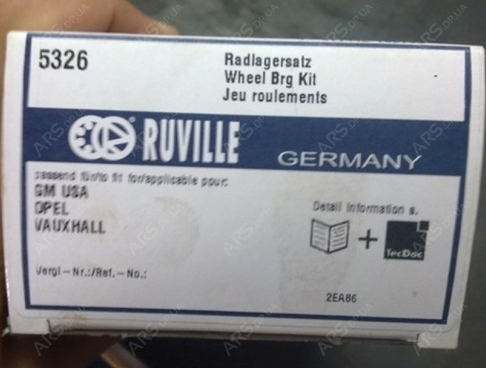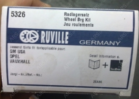 Подшипник ступицы передней Lacetti, Gentra, Leganza, Tacuma, Opel, Astra F 91-01, Calibra 90-97, Omega B 93-03, Vectra A 93-95, Vectra B 95-03, Chery, M11 - 5326 Ruville